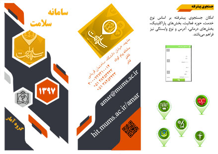 سامانه همراه سلامت دانشگاه علوم پزشکی مشهد یک نرم افزار قابل نصب بر روی گوشیهای هوشمند دارای سیستم عامل آندروید است که در آن اطلاعات بیمارستانها، درمانگاهها، مطب پزشکان، مراکز بهداشتی درمانی، آزمایشگاهها، داروخانهها، مراکز اورژانس، مراکز توانبخشی و مراکز پرتودرمانی با توجه به طول و عرض جغرافیایی این مراکز بر روی نقشه شهر مشهد بارگذاری خواهد شد. با نصب این نرمافزار، افراد میتوانند به راحتی واحد موردنظر خود را جستجو و بهترین مسیر دستیابی به آن را پیدا کنند.