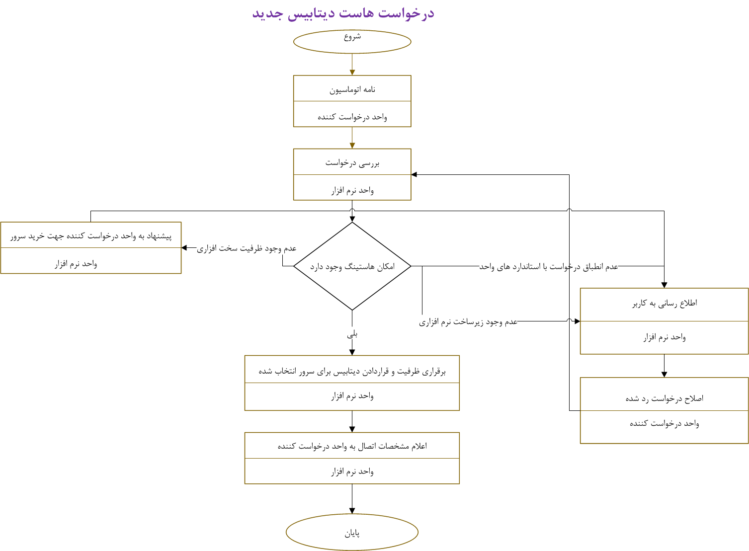 ارسال نامه اتوماسيون درخواست هاست و ذکر مولفه های : 1-ورژن SQl که سامانه می تواند پشتیبانی کند 2-مقدار Ram مورد نیاز 3-میزان تراکنش های معمول دیتابیس |