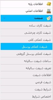 1- انتخاب "شیفت کمکی پرسنل" از زیر منوی "شیفت"