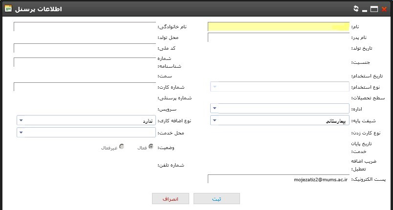 5- تغییر فرم گزارش پرسنلی جهت تسریع در گزارش گیری و ورود اطلاعات مربوطه