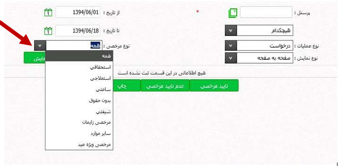 7- امکان فیلتر نوع مرخصی ها در فرم تایید مرخصی