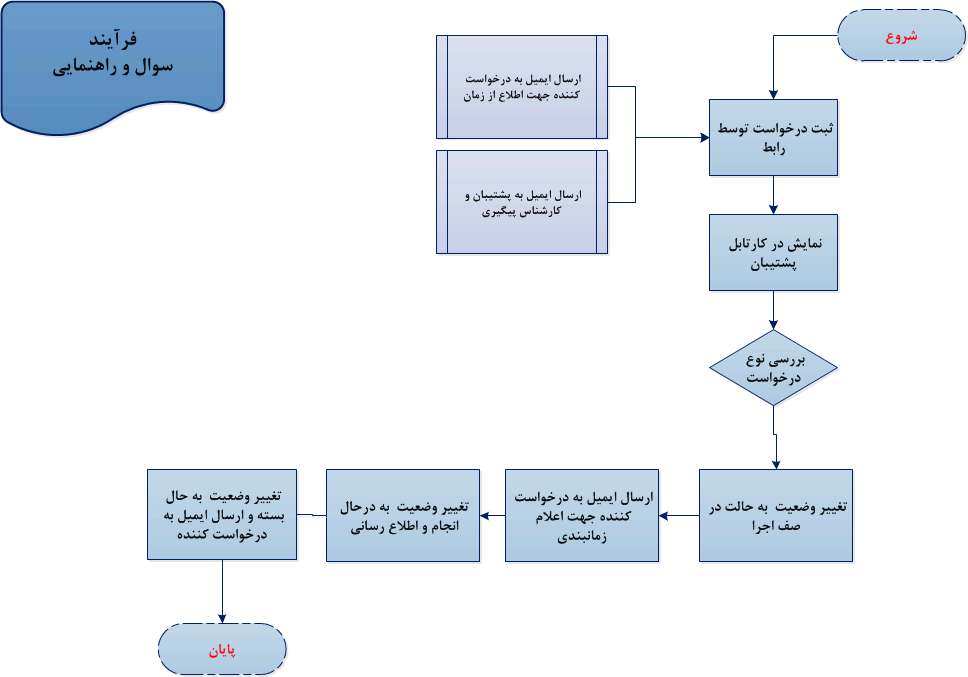- تغییر وضعیت درخواست و اطلاع رسانی به درخواست کننده توسط پشتیبان
