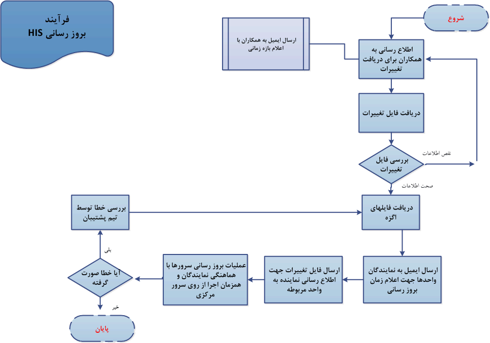 - دریافت فایلهای اگزه برای نسخه جدید و هماهنگی با مسئولین HIS برای انجام بروز رسانی