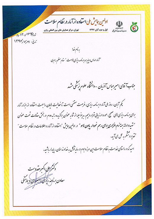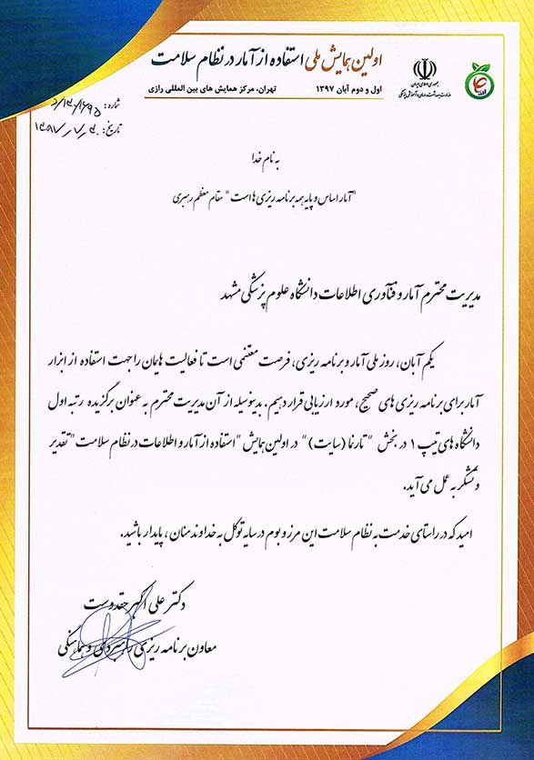 گروه آمار مدیریت آمارو فنآوری اطلاعات و ارتباطات دانشگاه علوم پزشکی مشهد با تکیه بر دانش ، تجربه ، نیروی انسانی و اطلاعات موجود در سازمان، همواره توانسته است اقدامات نوآورانه ای در جهت افزایش کارآیی و جایگاه گروه آمار داشته باشد.