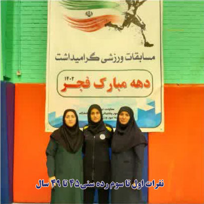 سرکار خانم مهندس زهرا اسماعيلی، کارشناس شاغل در مديريت آمار و فناوري اطلاعات، در مسابقات آمادگی جسمانی بانوان دهه فجر 1402 دانشگاه علوم پزشکی مشهد، موفق به کسب مقام سوم گرديدند.