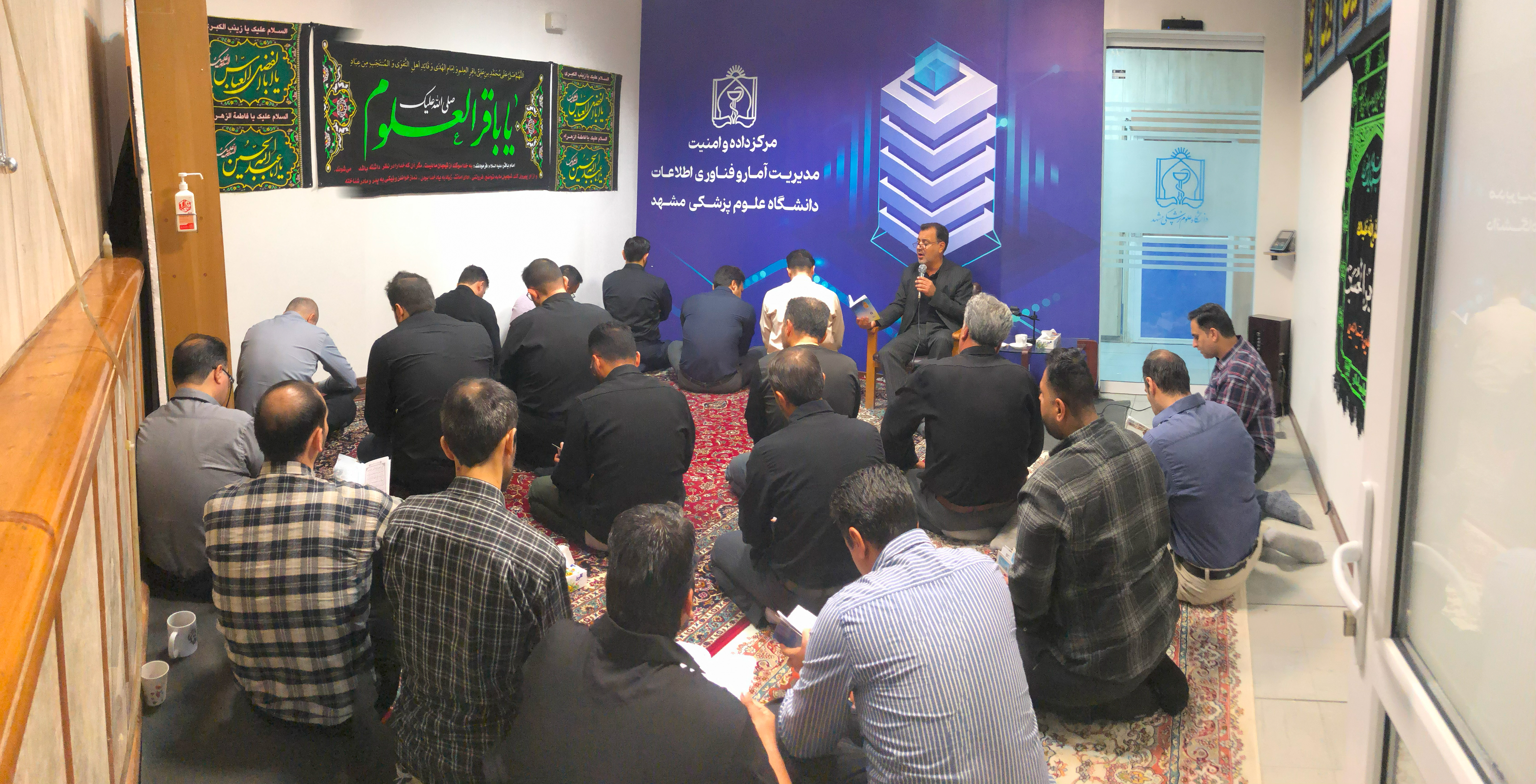 به مناسبت فرارسيدن ايام سوگواري سرور و سالار شهيدان، حضرت اباعبدالله الحسين(ع) و ياران باوفايش، به رسم هر سال، مراسم عزاداری و زیارت عاشورا، در مدیریت آمار و فناوری اطلاعات و امنیت فضای مجازی، با حضور همکاران اين مديريت، همه روزه در دهه اول محرم برگزار مي گردد.