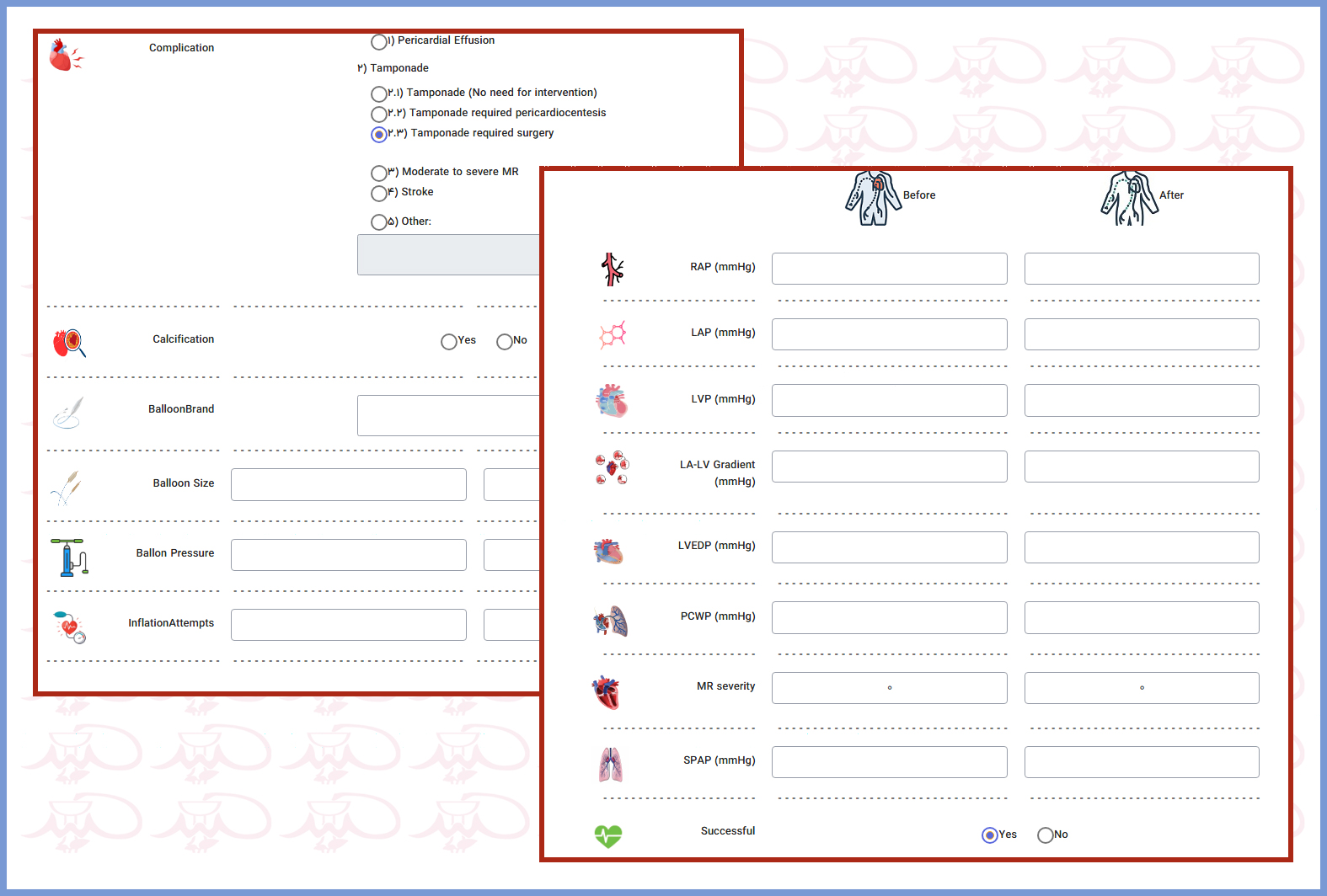 در بخش آنژیوگرافی نیز با هدف جایگزینی روشهای دستی ثبت دادهها، امکان ثبت مقایسهای مقادیر قبل و بعد از اقدام درمانی برای تمام پارامترها و مستندسازی ساختاریافته ی عوارض، وضعیت موفقیت عمل، و ویژگیهای بالون مورد استفاده را فراهم میآورد .